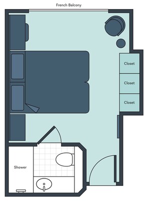 Luxurious riverview stateroom (151 sq ft - 14 sq m) with a French balcony