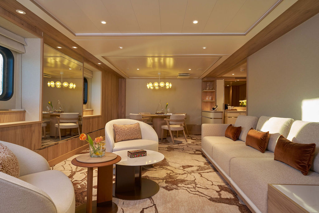 Experience grandeur and elegance in a suite with two sliding glass doors opening to a private terrace. Relax in a spacious living and dining area, with butler service, plush bedding, rain shower, and premium bath amenities ensuring every comfort.
